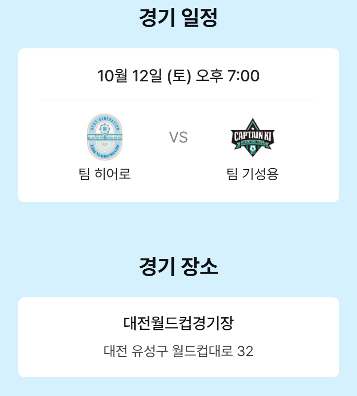 경기 일정은 10월 12일 토요일 오후 7시이며, 경기 장소는 대전월드컵경기장(대전 유성구 월드컵대로 32)에서 펼쳐집니다. 경기 시청은 쿠팡플레이 앱로만 독점 생중계 됩니다.