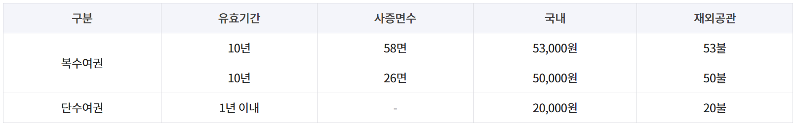 *단, 여권 재발급 신청 시 병역 미필자의 경우 5년 유효기간 여권 발급만 가능합니다. 10년 유효기간 여권을 발급받길 원하는 경우에는 추가 서류를 제출하고 대행기관으로 방문하여야 합니다.